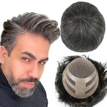 Lớp Biểu Bì Phù Hợp Ấn Độ Remy Da Mỏng Tốt Hàn Mono Ren Phía Trước Tóc Giả Tóc Con Người Hệ Thống 7 # Với 20% Màu Xám Tóc Tóc Giả Cho Nam Giới